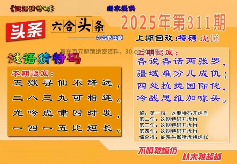 316期:金牌谜语/发财诗/论坛先锋诗/黄大仙射箭/天机诗